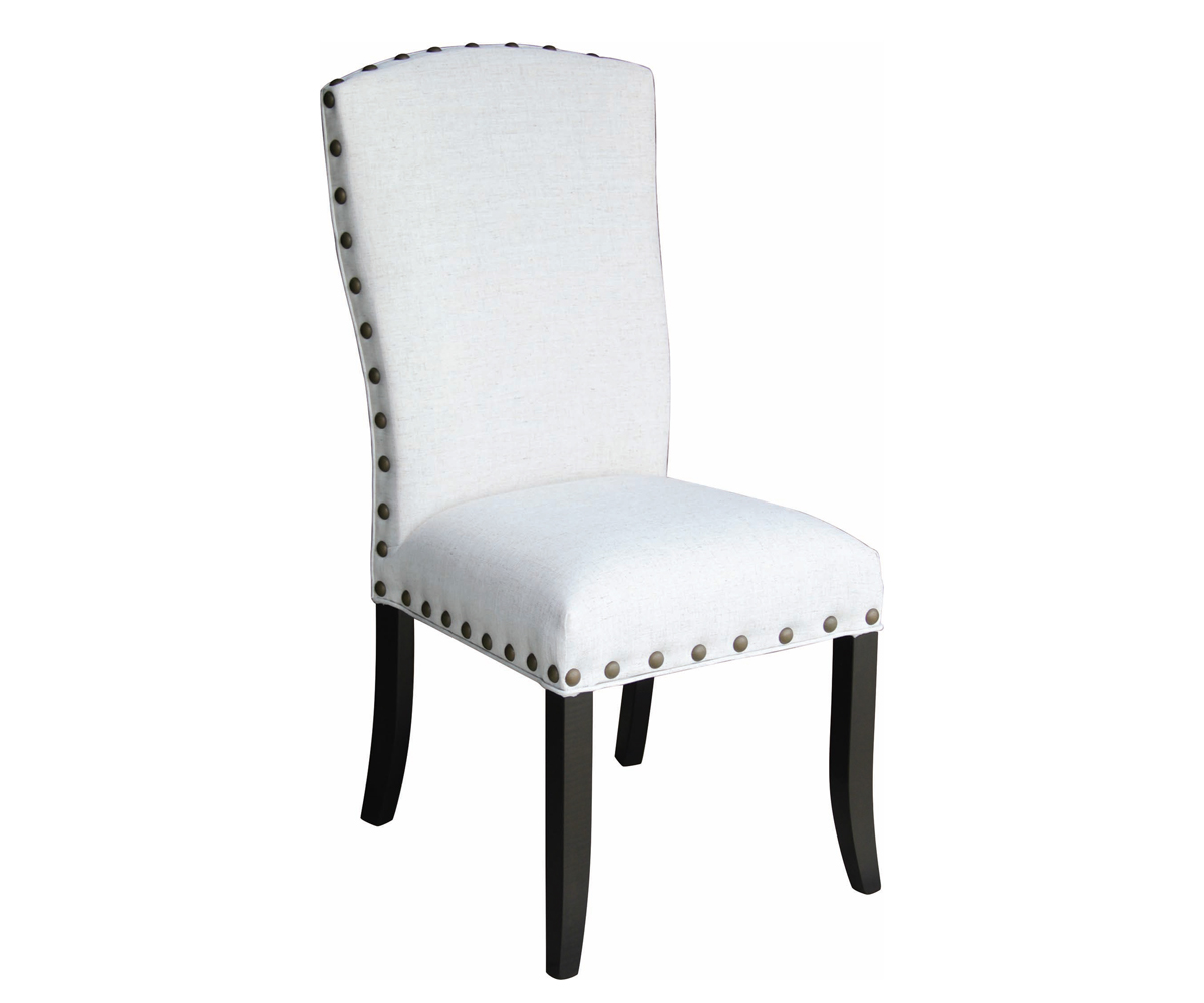 Options: • Leather in place of fabric • Tack around the edge (shown on side chair) • This design is also available in counter and bar height